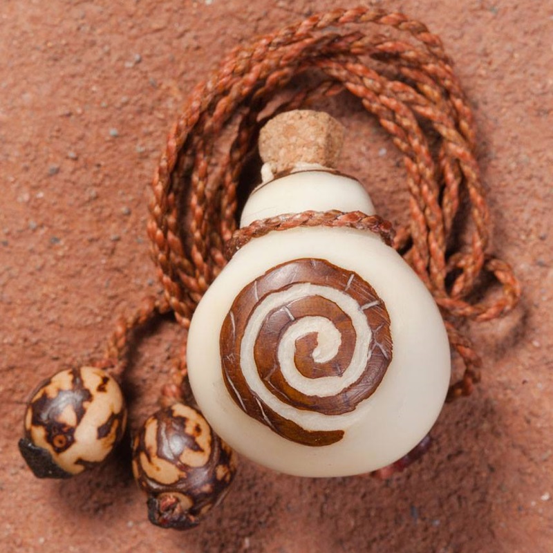 La botellita de Yarina está elaborada de forma artesanal con semillas de yarina, creando una pieza única que refleja la conexión con la naturaleza. Su diseño rústico y natural simboliza la esencia y la fuerza de la selva, ofreciendo un accesorio distintivo y lleno de significado. Perfecta para quienes buscan un detalle auténtico y sostenible.